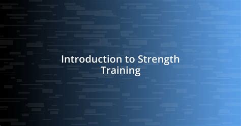 Introduction to Strength Training